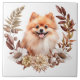 Red Pomeranian Dog Autumn Wreath Ceramic Tile