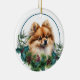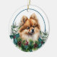 Red Pomeranian Dog Evergreen Berry Wreath Ceramic Ornament