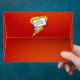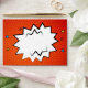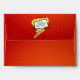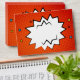 Pun pop art envelope in bright red with a white burst for the address. Speech bubble on the back flap for the return address.