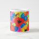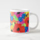 A prettyJumbo-Sized Coffee Mug, with a vibrantly coloured pattern of scarlet poppies and bright blue cornflowers, from a handpainted design by Judy Adamson.