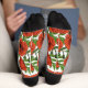 Red poppies and wrens, green leaves on white socks