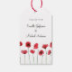 Watercolor red poppies on a row thank you favour tag. Elegant and colourful floral design on a white background, with a velvet red back. The background is transparent so it can be changed and customised. Suitable for bridal showers, baby showers or birthday parties.