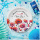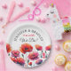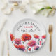 Pretty red oil painted poppies with the sun illuminating them. Red and green tones. Personalised paper plates for the rehearsal dinner, wedding reception or bridal shower.