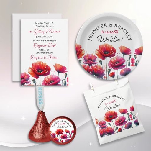Red Poppies Floral Wedding Personalised Napkin