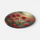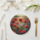Pretty red oil painted poppies with the sun illuminating them. Red and green tones. Personalised paper napkins for the rehearsal dinner, wedding reception or bridal shower. Bride and groom initials and wedding date.