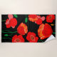 Red poppies on black background illustration beach towel