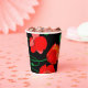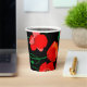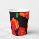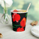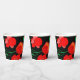 Red poppies on black background illustration paper cups