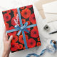Red Poppies on Black Patterned Birthday Wrapping Paper