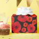 Red poppies wrapping paper is perfect for a birthday celebration. This rolled, high quality gift wrap has a black background color with red poppy flowers in various sizes. Rolls come in custom lengths to buy as much or little as needed. The background color is easy to change.