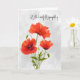 Red poppy flowers on grey abstract watercolor background for sympathy.