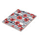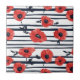 Red Poppies with Blue Leaves and Striped Pattern 3 Ceramic Tile