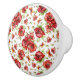 Red Poppies with Green Foliage on White Background Ceramic Knob