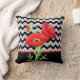 Red Poppy Black White Zigzag Chevron Decorative Cushion