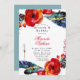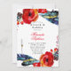 This design features floral elements with red orange poppies and teal blue boho feathers. Great for your wedding celebrations! This is a mix and match collection piece. Enjoy