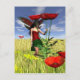 Dark haired fairy holding a red field poppy with a summer cornfield background, 3d digitally rendered illustration