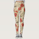 Pretty floral leggings with a pattern of red poppies on a neutral background.