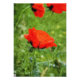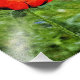Original funky retro flower design. Red colourful poppy after the rain, green background, painting effect