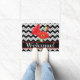 Make a fashion statement at your door when welcoming people to your home with this door mat featuring a red poppy bouquet and the words "Welcome". The word can be changed by customising to your own greeting or name. Great for the door to your office as well. The Chevron ziz zag (zizzag) graphic design is one of the hottest art and design trends, and is extremely popular from fashion to home decor. This sophisticated black and white chevron rug is given an eye popping dash of colour with the red poppies on the chevron design and the words welcome on a black strip with red edges. Easy to customise!