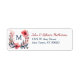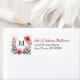 This return address label has a beautiful watercolor image of a pretty red poppy, teal blue leaf wreath with your monogram at the centre. Your name and address are in matching red and teal at the right of the image.