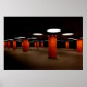 RED POST UNDER CEILING LIGHT AT NIGHT POSTER