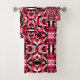 Bath Towel Set Of 3 bathroom amenity and casual fun home furnishing decor accessory printed with Red Power Perspective Colour Gradient Filled Art broken glass mosaic style in red, garnet, ruby, pink, grey, black and white artwork design illustration by TheFabricSeal at Zazzle #ZazzleMade https://www.zazzle.com/store/thefabricseal