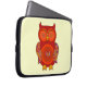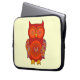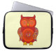 A cute cartoon psychedelic owl in red, orange, yellow, purple and blue colours.