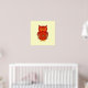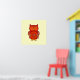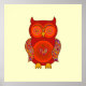 A cute cartoon psychedelic owl in red, orange, yellow, purple and blue colours.