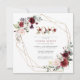 A gold geometric frame anchors this square graduation invitation. It is decorated with burgundy red, deep purple and blush pink roses. They are nestled in an assortment of leaves and vines. 2019 is written in gold numbers that are decorated with red roses. The graduate's name is also in dark red. The remaining text is black. The white background makes everything pop. The graduation invitation back is a rustic gold pattern. Sophisticated and chic.
