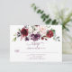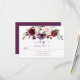 Lush bouquets of peonies, roses, wildflowers and matching greenery RSVP. The word RSVP is in an ornate calligraphy script. The back of the card is a dark purple. There is a matching invitation available.
