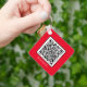This is a red aluminum square QR code key ring for your social media platform. Fully customizable with your handle, QR code and monogram name.
