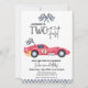 Race on over — someone’s turning TWO FAST! This adorable second birthday invitation features a vintage race car in cool watercolor blues, complete with a fiery flame bursting from the back wheel for extra zoom! Perfect for your little speedster’s big day, this retro design combines classic car charm with playful energy, setting the pace for a fast and fun celebration.