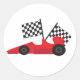 Finish off you party with this adorable race car design. This is a red race car set with two black and white chequered flags behind it. See our many other items also available. Check out our matching invitations too.