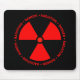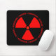 Black mousepad with red radiation symbol surrounded by "Danger - Radiation" in repeating red text.