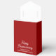 This chic red and white favor box is personalized with your real estate company name and realtor name under the modern cursive script. Congratulate your clients on a Happy Housewarming with these custom house congratulations boxes.