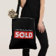 Black Red Real Estate Agent Sold Sign Tote Grocery Shopping Bag by Tell3People. Personalise with name.