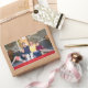 Red rectangle Merry Christmas photo stickers with changeable text and photo.