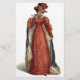 Stylish Regency -era fashion plate. English lady in red with hat.