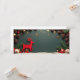 Illustration of a red queen reindeer made of cut-out paper on a Christmas green background, decorated with pine cones, ornaments, gifts. Festive flat lay style - 3D papercut