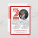 Go big and bold with this class year design that uses multi-line retro-style numbers for the date and your photo for the zero. Add your own name and school name to complete the look. Back includes two more photos cropped down to squares and space for details about your celebration or future plans. Change the colours to match your school as you like. Available in school colours of red, orange, green, blue, purple, burnt orange, black and maroon. Matching products available.