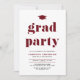 Invite family and friends to your graduation with this customisable grad party invitation. It features red retro bold typography. Personalise this red and white invitation by adding your event details. This modern graduation party invitation is available in other colours and cardstock.