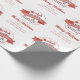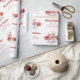 This design features a Christmas wrapping paper design with a modern holiday pattern, a retro vintage, festive red and white, Santa Claus, with a reindeer sleight rides, a cute whimsical fun, typography script, calligraphy, unique gift wrap