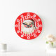 Red Retro Santa Claus Red Ric Rac Christmas Large Clock