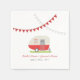 Paper napkins featuring an illustration of a retro red trailer camper with red and yellow bunting. Personalise the text. Look for matching invitations and other coordinating items at Jill's Paperie.