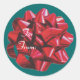 Add a nice touch to your gift-wrapped Christmas presents with this festive gift tag sticker with a beautiful red ribbon bow on a green Christmas background. The gift tag has an area to write in the recipient's name and the name of the gift giver where it reads "To" and "From". To change the background colour to a different shade of green, just click on "customise" and then click on "background" and choose a colour of your choice. When applying gift tag to presents, simply peel and stick. Happy Holidays!