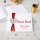 Elegant red ribbon and silver swans decorate this guestbook. Wedding guest books are fun for both the couple and their celebrants. Invite attendees to leave you well-wishes at your reception, and you're guaranteed to have a keepsake to look back on for years to come. Plus, your guests will get to leave their mark on your event, not to mention put in writing whatever they didn't have a chance to express in person on the big day. Personalise the book by changing the text in the fields provided. You can change font style, size, and colour.