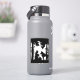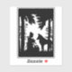 This vinyl sticker is black silhouette on white of little red riding hood sitting under trees in the forest with a watering can talking to the wolf.