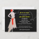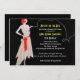 Full-length vintage illustration of a fashionably dressed flapper standing with one hand on her hip and a cigarette in the other hand. A stream of smoke from the cigarette forms a curving, twisting, decorative line. Our 1920's flapper theme or jazz theme party invitation can be customised to any event wether it's a birthday party or corporate party. Just choose your own font syles.
