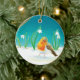 Red Robin Bird and Snowdrops Illustration Ceramic Ornament