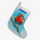 Cute fluffy red Christmas Robin in the snow makes a festive Christmas stocking. The name can be easily changed to the name of your choice using the template text.