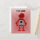 A cool red robot with all his bells and whistles on a shaded red background. The saying can be changed as desired.